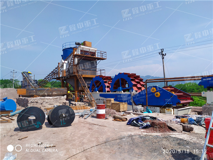 鵝卵石濕法制砂洗砂的生產(chǎn)線(xiàn)現(xiàn)場(chǎng)_附加工設(shè)備報(bào)價(jià)..